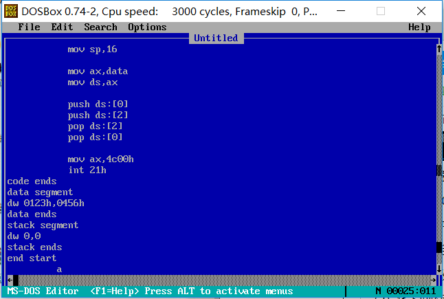 第三条程序仍然可以正确执行,如果不指明入口位置,则程序从所分配的空间开始执行,前2个是数据段,只有从第3条开始是指令代码。