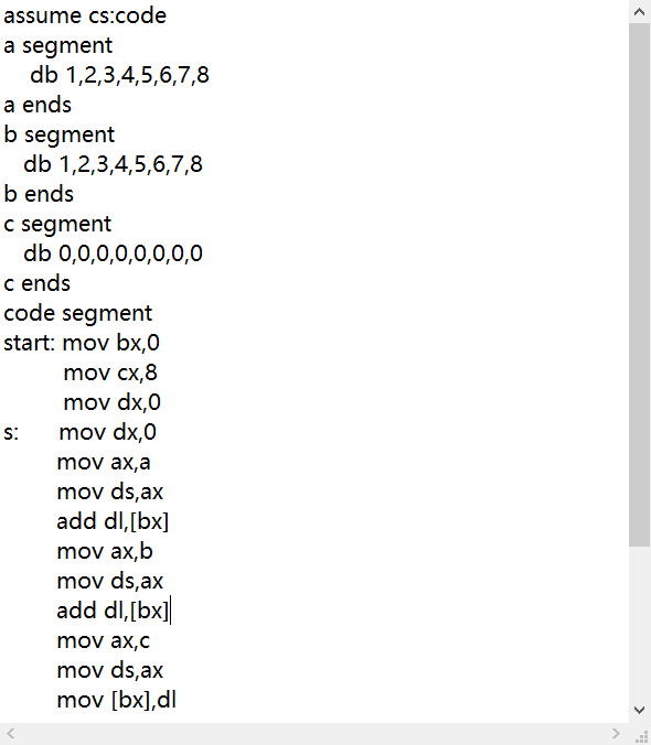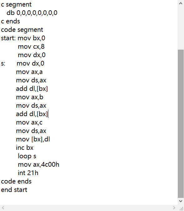 (5)程序如下,编写code段中的代码,将a段和b段中的数据依次相加,将结果存放到c段中。