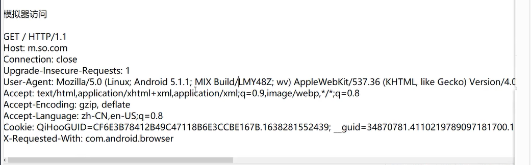 用burpsuite在电脑访问的数据包中把ua头改成安卓模拟器的ua,再把它放掉可以实现电脑进入模拟器的360,同样在模拟器的ua改成电脑再把有明确安卓设备的去掉再放掉
