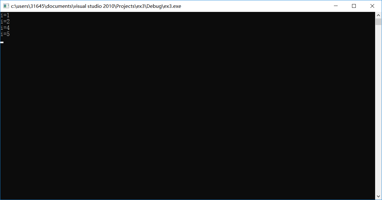 // 对比demo5_1.cpp和demo5_2.cpp,理解控制语句continue和break的功能 #include <stdio.h> int main() { int i; // 在循环语句中使用continue for(i=1; i<=5; i++) { if (i%3 == 0) // 如果i是3的倍数,则结束本次循环,开始下一次循环 continue; printf("i=%d\n",i); } getchar (); return 0; }