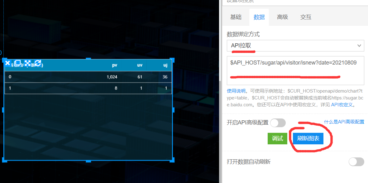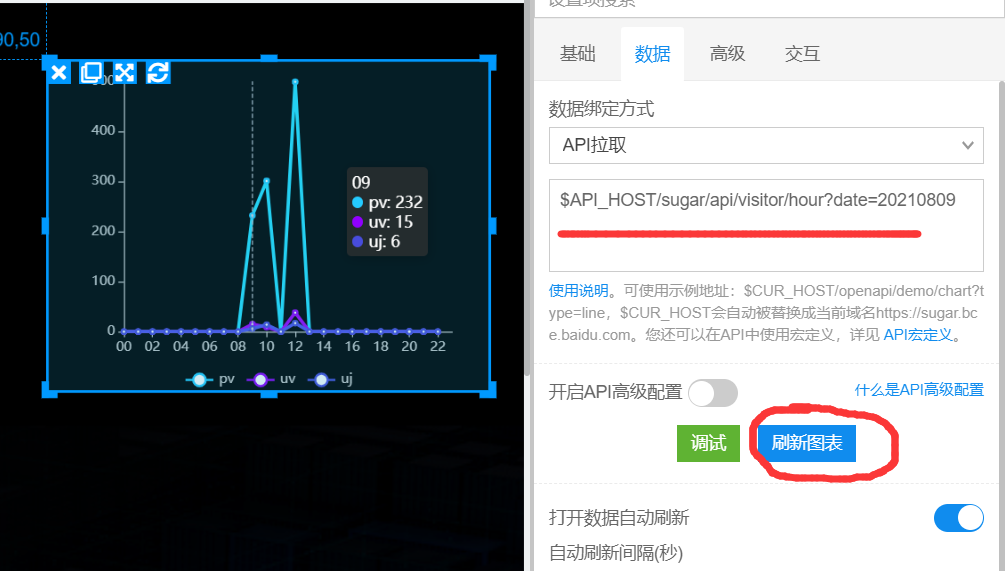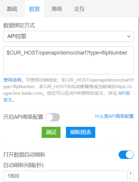 这个就是sugar会周期性访问的数据接口地址,可以自定义,其中$CUR_HOST是个全局变量,需要在空间中配置(后面再说)