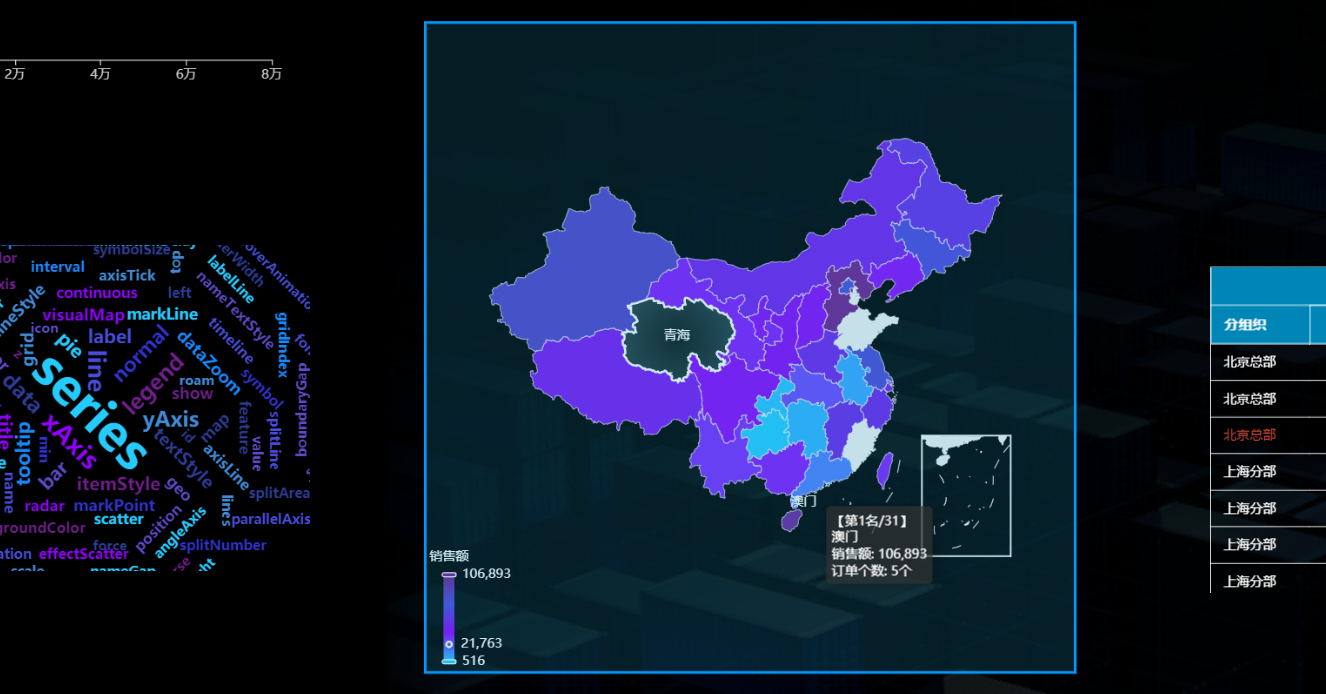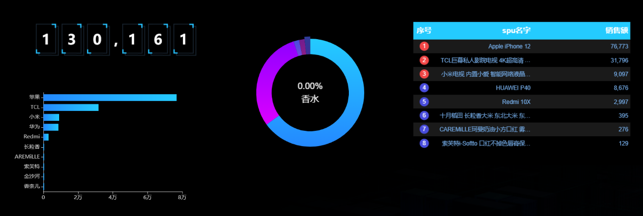 在可视化大屏中每个组件都需要一个单独的接口,图中一共涉及8个组件。