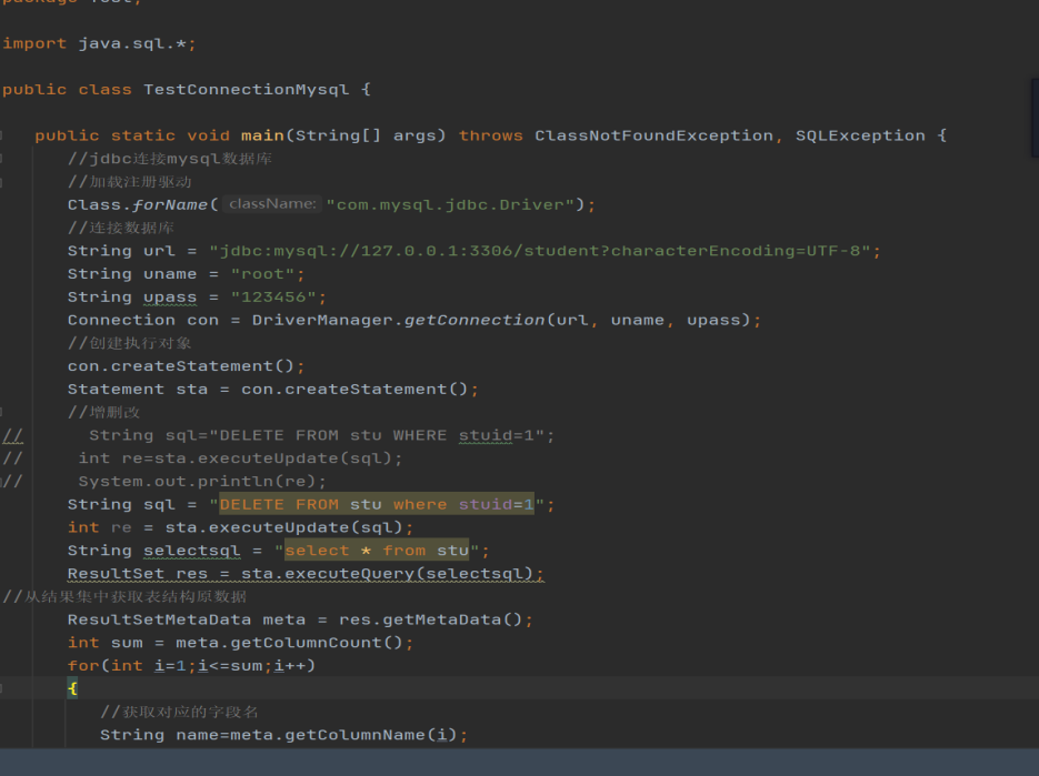 1.注册驱动:(反射)2.创建连接3创建数据库对象4获取结果集合(迭代)