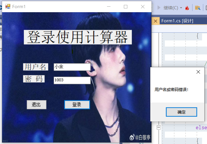 MessageBox.Show("用户名或密码错误!","Error",MessageBoxButtons.OK ,MessageBoxIcon.Error);