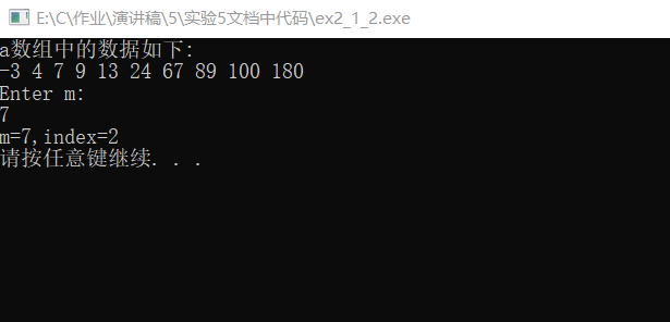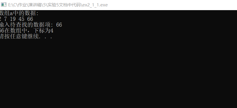 printf("%d在数组中,下标为%d\n", key, index);