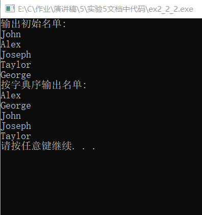printf("按字典序输出名单:\n");