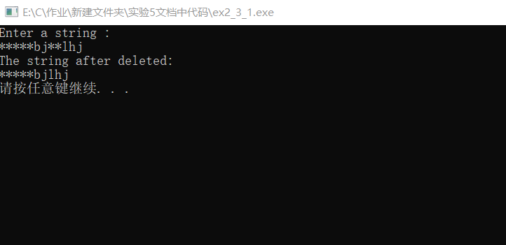 printf("The string after deleted:\n");