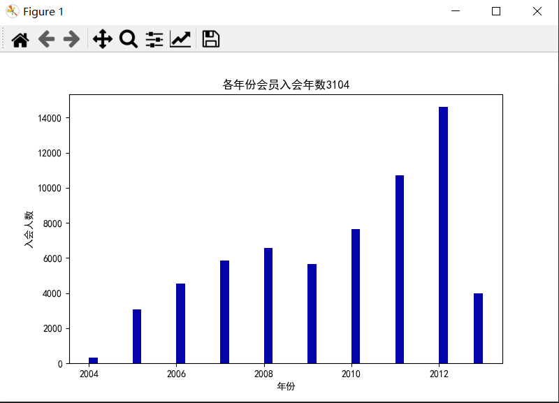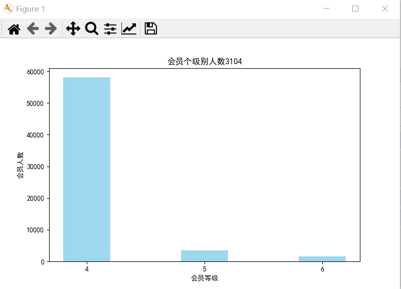 #客户信息类别 #提取会员入会年份 from datetime import datetime import matplotlib.pyplot as plt import pandas as pd datafile = r'C:\Users\Minori\Desktop\python实训\air_data.csv' data = pd.read_csv(datafile, encoding='utf-8') # 读取原始数据,指定UTF-8编码 ffp = data['FFP_DATE'].apply(lambda x:datetime.strptime(x,'%Y/%m/%d')) ffp_year = ffp.map(lambda x : x.year) #绘制各年份会员入会人数直方图 fig = plt.figure(figsize=(8,5)) #设置画布大小 plt.rcParams['font.sans-serif'] = 'SimHei' #设置中文显示 plt.rcParams['axes.unicode_minus'] = False plt.hist(ffp_year, bins='auto', color='#0504aa') plt.xlabel('年份') plt.ylabel('入会人数') plt.title('各年份会员入会年数3104') plt.show() plt.close #提取会员不同性别人数 male = pd.value_counts(data['GENDER'])['男'] female = pd.value_counts(data['GENDER'])['女'] #绘制会员性别比例饼图 fig = plt.figure(figsize=(7,4)) plt.pie([male,female],labels=['男','女'],colors=['lightskyblue','lightcoral'],autopct='%1.1f%%') plt.title('会员性别比例3104') plt.show() plt.close() #提取不同级别会员人数 lv_four = pd.value_counts(data['FFP_TIER'])[4] lv_five = pd.value_counts(data['FFP_TIER'])[5] lv_six = pd.value_counts(data['FFP_TIER'])[6] fig = plt.figure(figsize=(8,5)) plt.bar(x=range(3),height=[lv_four,lv_five,lv_six],width=0.4,alpha=0.8,color='skyblue') plt.xticks([index for index in range(3)],['4','5','6']) plt.xlabel('会员等级') plt.ylabel('会员人数') plt.title('会员个级别人数3104') plt.show() plt.close() #提取会员年龄 age = data['AGE'].dropna() age = age.astype('int64') fig = plt.figure(figsize=(5,10)) plt.boxplot(age, patch_artist=True, labels=['会员年龄'], #设置x轴标题 boxprops={'facecolor':'lightblue'}) #设置填充颜色 plt.title('会员年龄分布箱线图3104') #显示y坐标轴的底线 plt.grid(axis='y') plt.show() plt.close()