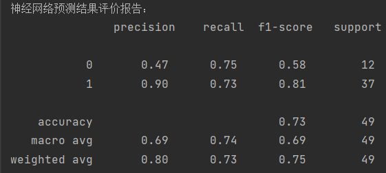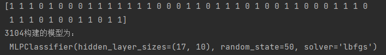 import pandas as pd from sklearn.preprocessing import StandardScaler from sklearn.neural_network import MLPClassifier import joblib # 读取数据 Xtrain = pd.read_excel('./sj_final.xlsx') ytrain = pd.read_excel('./water_heater_log.xlsx') test = pd.read_excel('./test_data.xlsx') # 训练集测试集区分。 x_train, x_test, y_train, y_test = Xtrain.iloc[:,5:],test.iloc[:,4:-1],\ ytrain.iloc[:,-1],test.iloc[:,-1] # 标准化 stdScaler = StandardScaler().fit(x_train) x_stdtrain = stdScaler.transform(x_train) x_stdtest = stdScaler.transform(x_test) # 建立模型 bpnn = MLPClassifier(hidden_layer_sizes = (17,10), max_iter = 200, solver = 'lbfgs',random_state=50) bpnn.fit(x_stdtrain, y_train) pre_y = bpnn.predict(x_stdtest) print(pre_y) # 保存模型 joblib.dump(bpnn,'./water_heater_nnet.m') print('3104构建的模型为:\n',bpnn)