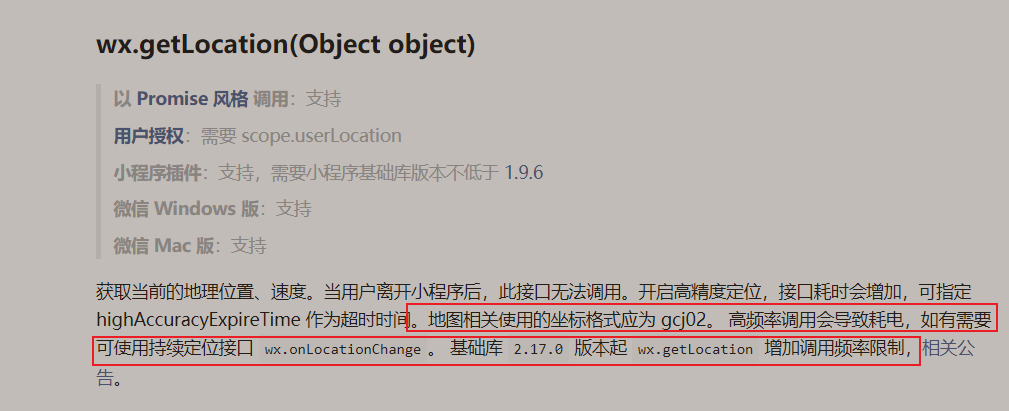 获取经纬度定位之前用的wx.getLocation(Object object) 现在官方有了限制,就换了实时定位。