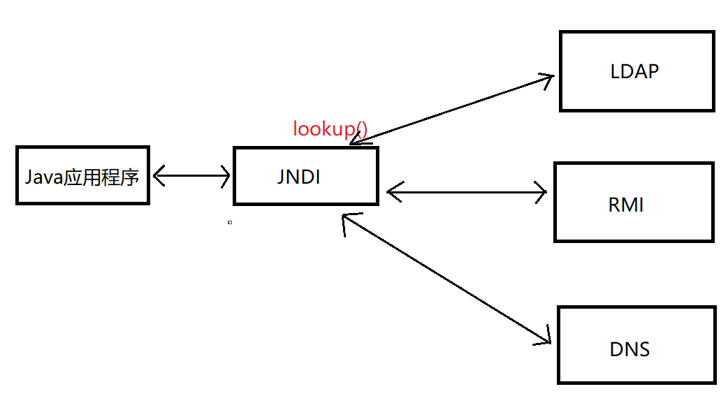 JNDI通过lookup()方法解析接收自应用程序的信息,从而去对应的服务(如LDAP、RMI、DNS、文件系统、目录服务…)查找资源。