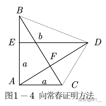 \(S_{四边形ABCD}=S_{\triangle ABD}+S_{\triangle ACD}=\frac1 2AD\cdot BF+\frac1 2AD\cdot CF=\frac12AD(BF+CF)=\frac12AD\cdot BC=\frac 12c^2\)