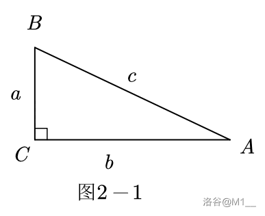 如图 \(2-1\) , 三角形三边为 \(a,b,c\) , 若 \(a,b,c\) 满足 \(a^2+b^2=c^2\) ,