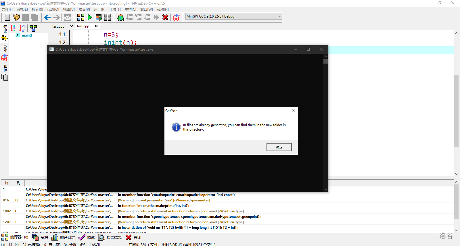 接下来打开 test.cpp
