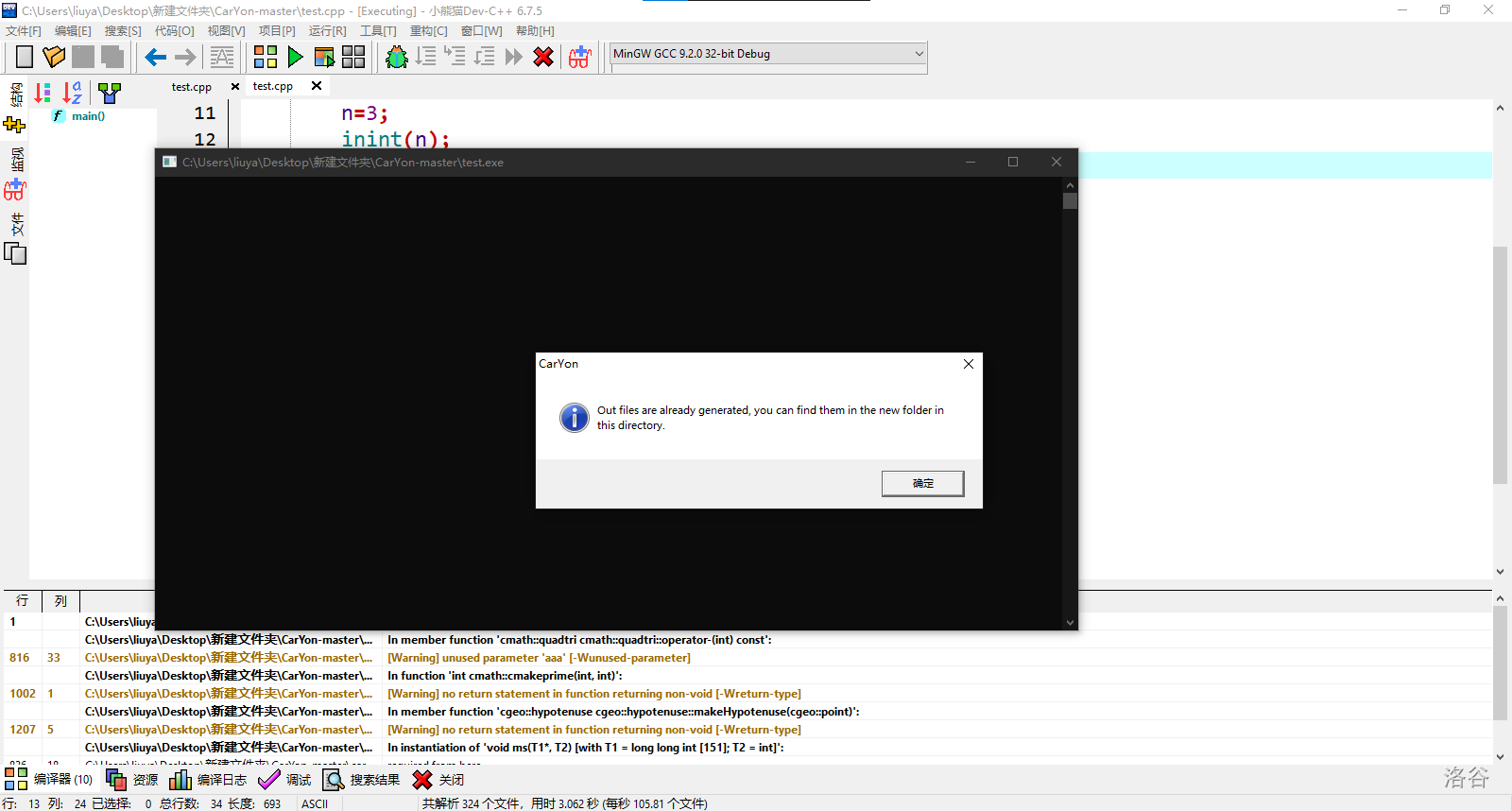 编译运行 test.cpp
