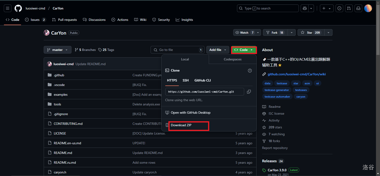 打开页面,找到绿色的 Code,点击 Download ZIP 下载文件。
