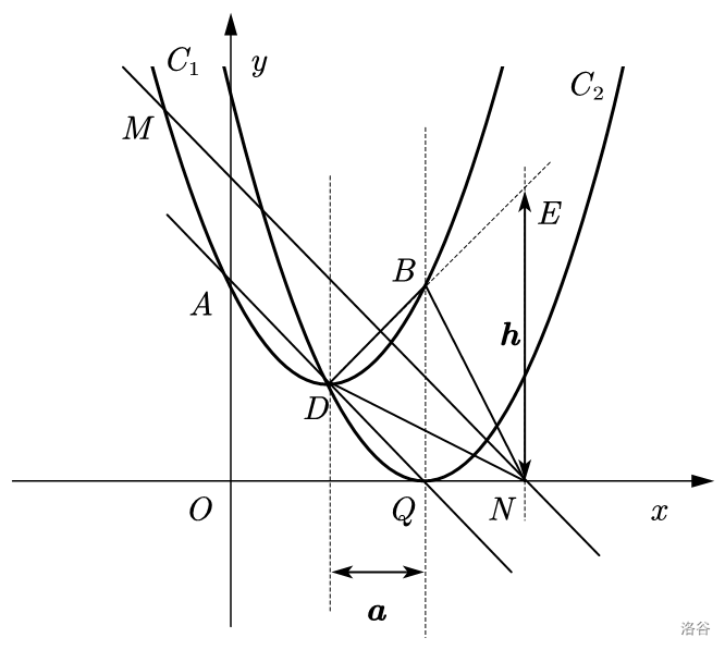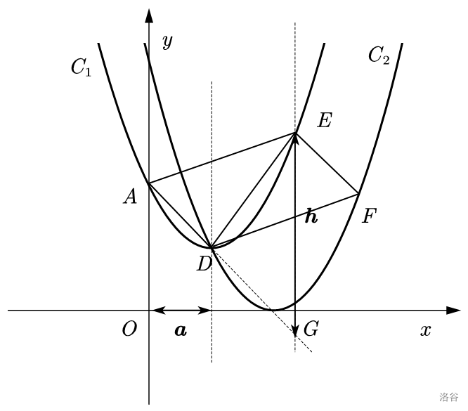 看第一问,带入坐标得 \(C_1:y=x^2-2x+2\)。可求得 \(D(1,1)\)。