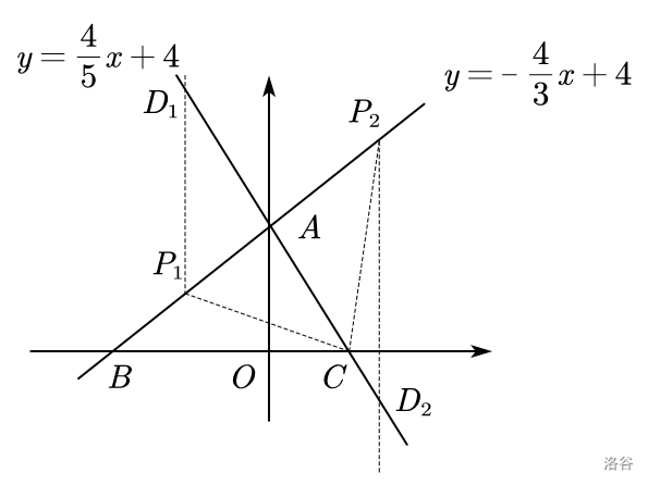 此时设 \(D(m,\frac{4}{5}m+4),P(m,-\frac{4}{3}m+4)\),则 \(|y_{D}-y_{P}|=DP\)。
