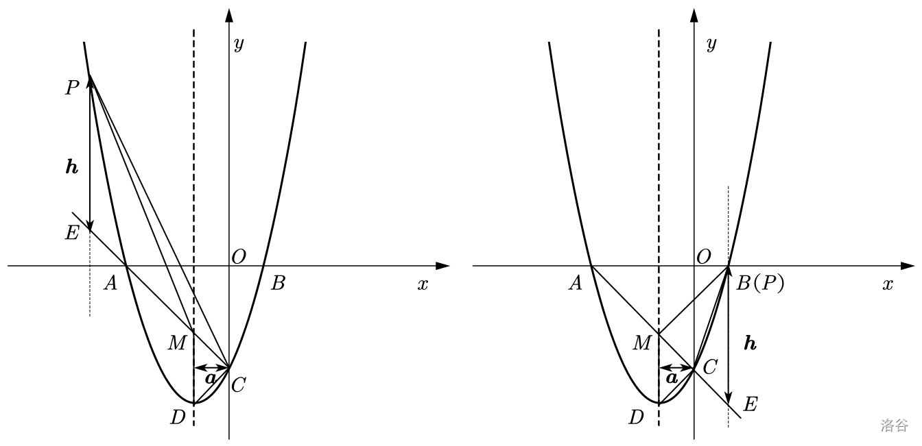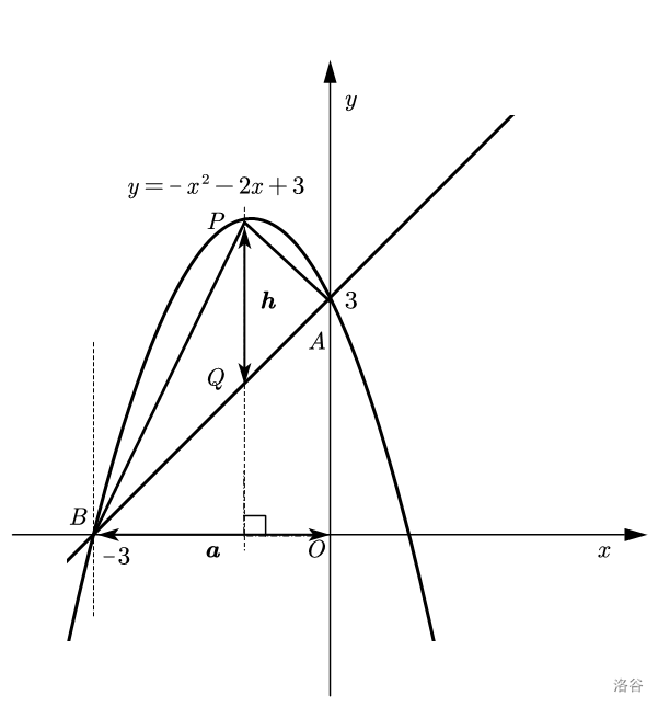 这时设 \(E(m,-m-3),P(m,m^2+2m-3)\)。所以 \(\boldsymbol{h}=PE=m^2+2m-3+m+3=m^2+3m\)。