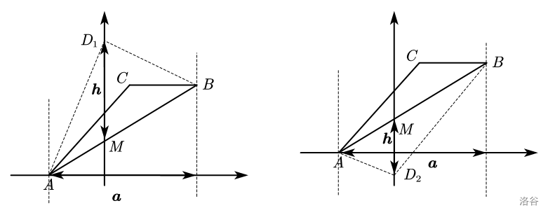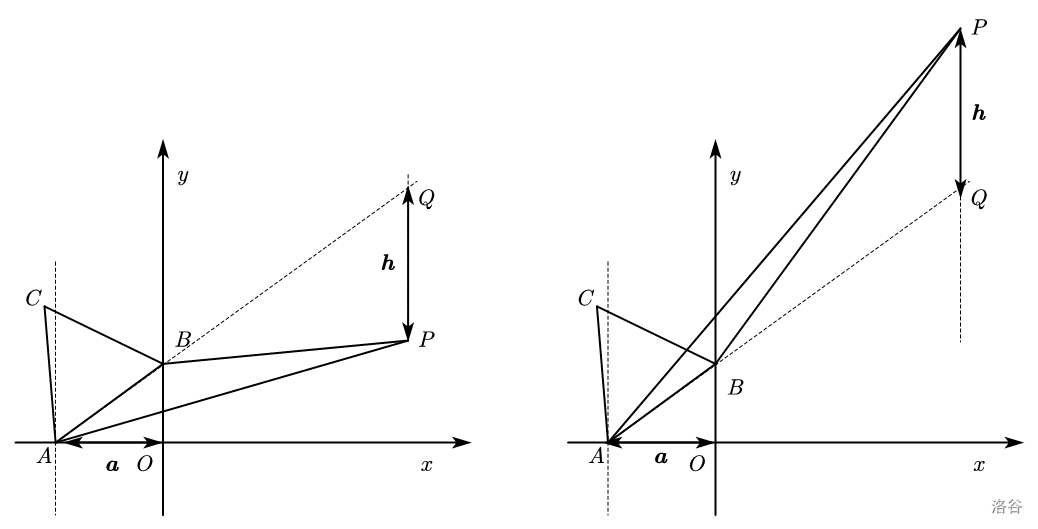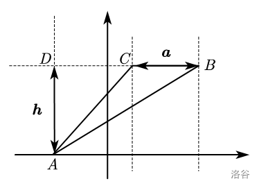 这时作水平宽铅垂高,得 \(OA=\boldsymbol{a},PQ=\boldsymbol{h}\)。