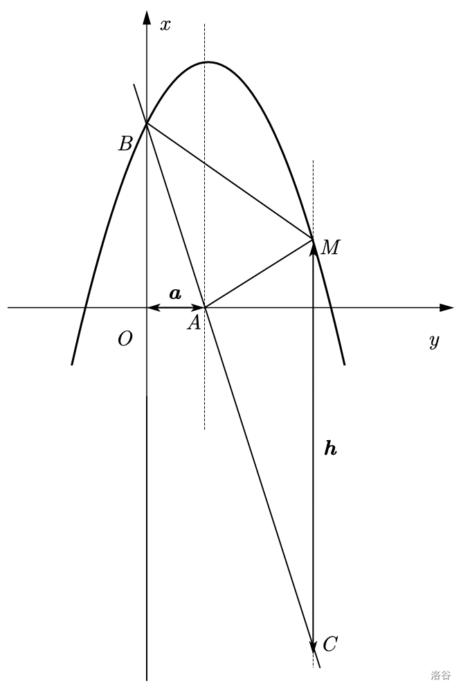 考虑第二问。因为题目要求 \(P\) 在 \(AC\) 上方,所以我们不用考虑绝对值的问题。