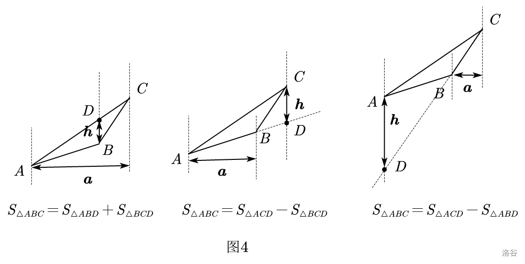 显然可以求出 \(S_{\triangle ABC}=4\)。具体求法也可以用水平宽和铅垂高。如下: