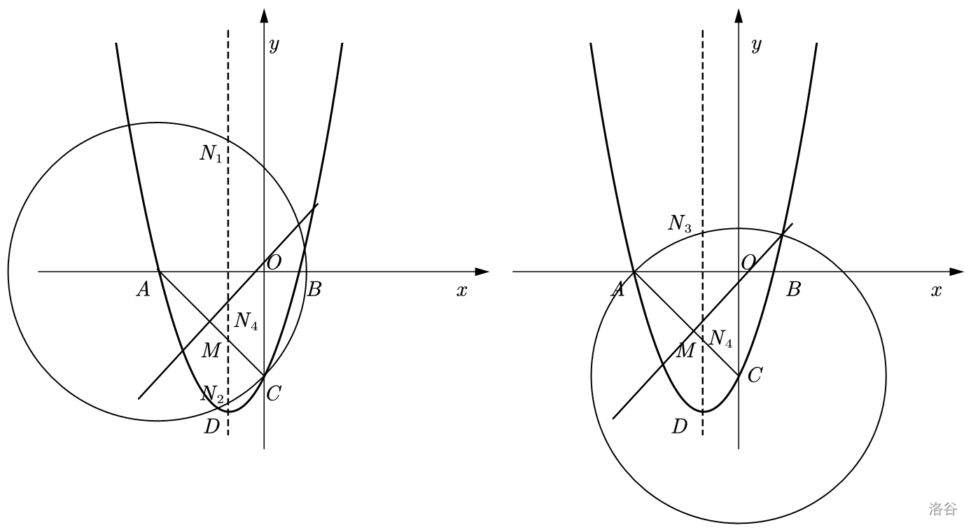 由题目可得 \(M,D\) 都在对称轴上,所以 \(x_M=-\frac{b_{C_{1}}}{2a_{C_{1}}}=-1\)。所以 \(M(-1,-2)\)。