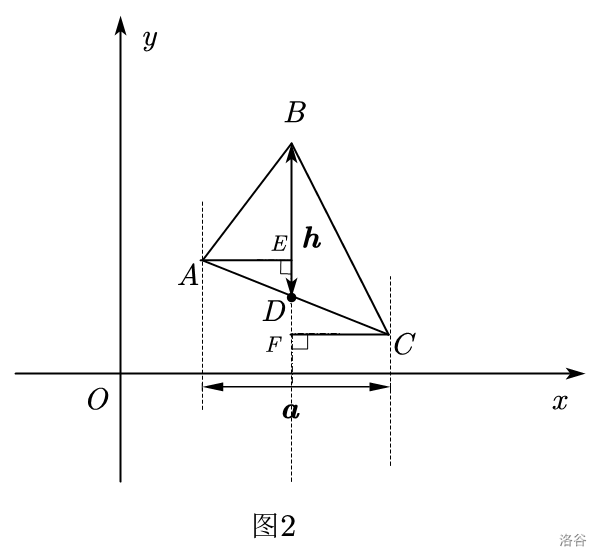 我们知道,对于一个等边三角形,另 \(a\) 为其边长,面积为: