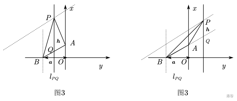 我们作四边形的水平宽铅垂高,可得 \(\boldsymbol{a}=|x_P-x_Q|=4,l_{PQ}:y=2x+1\)。