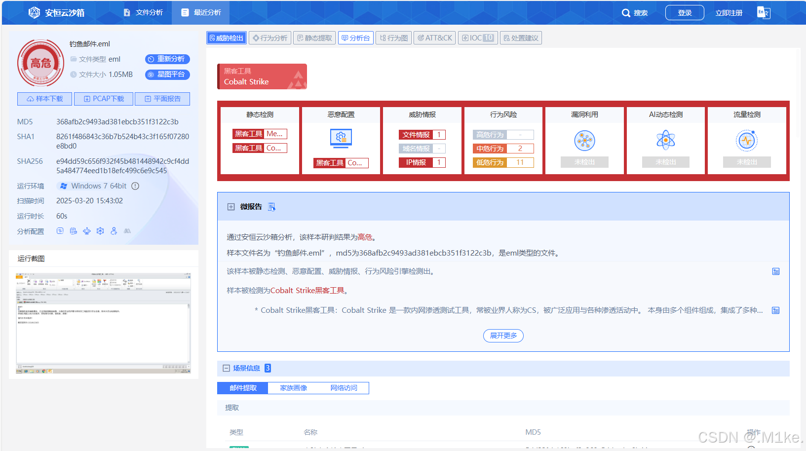 这里可以将钓鱼邮件可以丢到 安恒云沙箱 中进行分析
