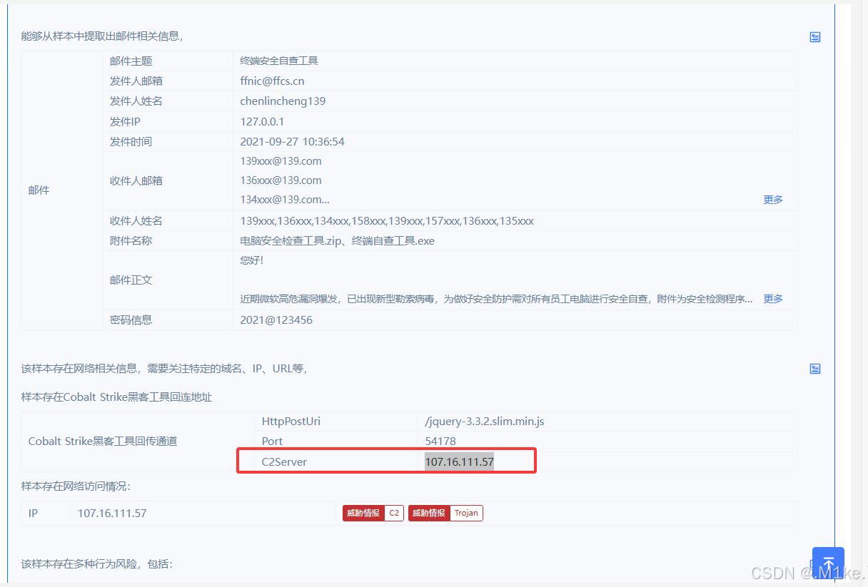 分析后发现是个高危,利用的是Cobalt Strike黑客工具,下拉得到服务端的地址