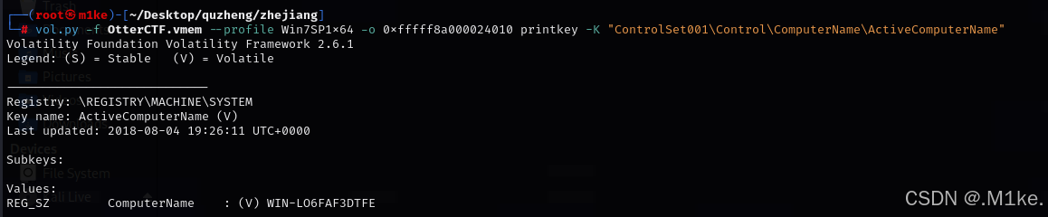 在ControlSet001底下可以发现**ComputerName** 键,对应的值则是PC名称,在ControlSet002下并没有任何回显