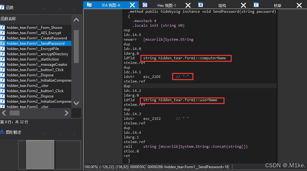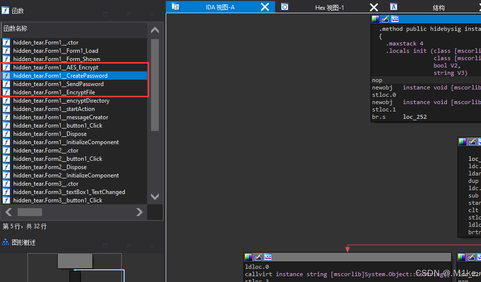 要恢复文件,需要知道用于加密的随机密码,这个密码和加密程序应该都在恶意软件 里,继续用ida分析第10题dump出的文件。 注意到这里有加密、创建密码、发送密码、加密文件四个过程