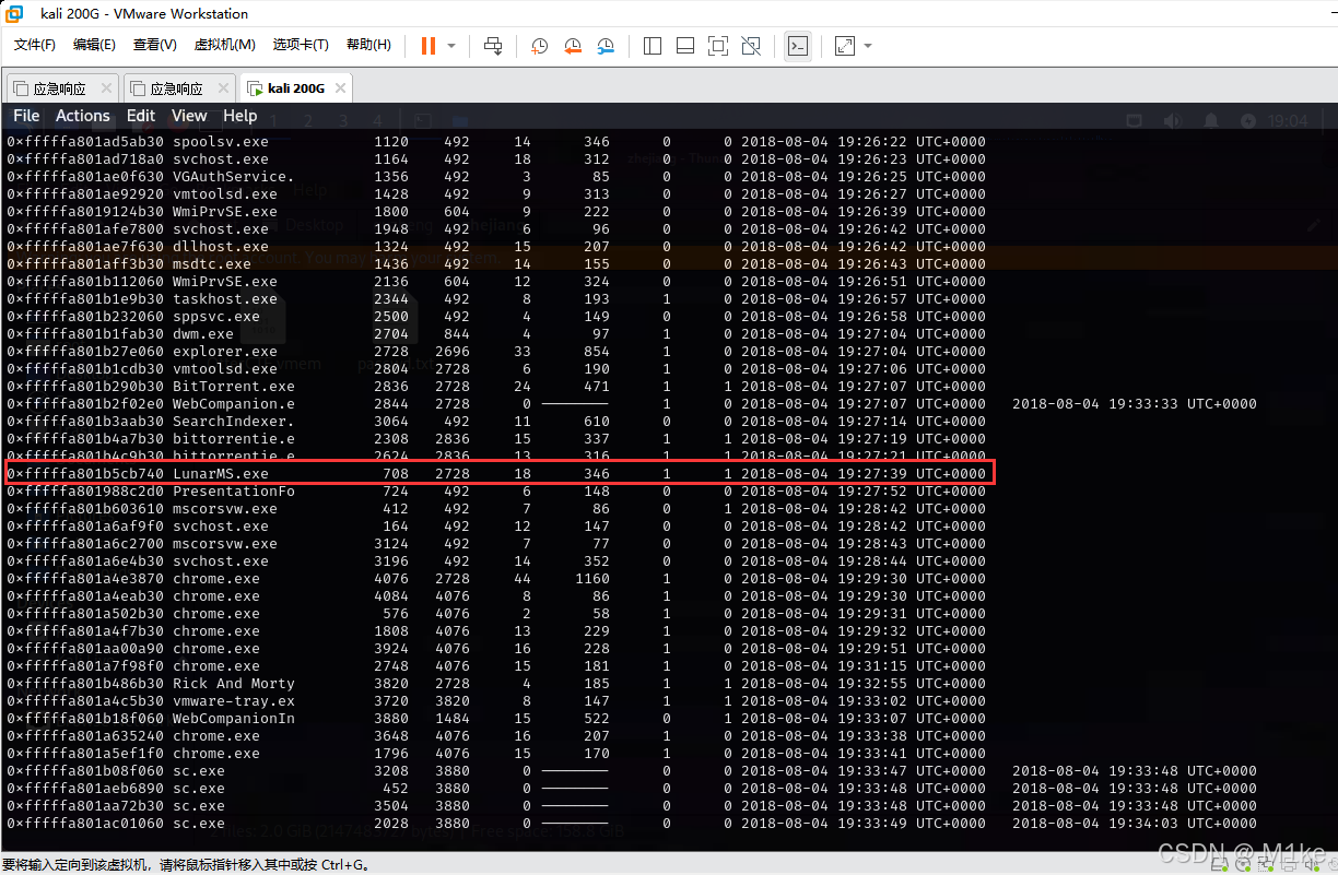 恶意的软件肯定是通过浏览器下载的,把chrome.exe 的所有进程保存下来
