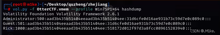 本题需要我们去得到瑞克账户的密码,使用 hashdump 命令查看账户密码信息
