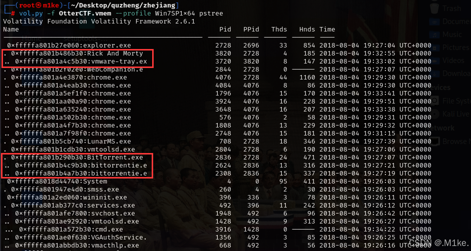 故事背景是一个叫Rick瑞克的喜欢玩老式游戏的人,而且这人吧还总喜欢用比特彗星下载盗版电影种子,游戏种子,有一天他边玩游戏边下东西,突然电脑中了勒索病毒,文件被锁了,所有后缀变成了.locked,然后取证分析人员拷贝了内存镜像文件,来看看你能从被锁的文件中获取什么信息?