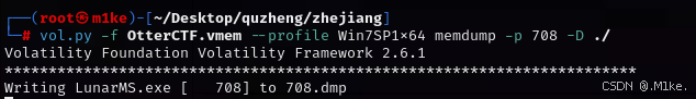 前面使用 pslist 查找到 LunarMS 的进程,可以使用 PID 将目标进程下载下来