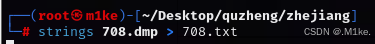 如果直接使用 cat 无法得到其中的内容,可以利用 strings 命令对内容进行一个转储,再进行查询