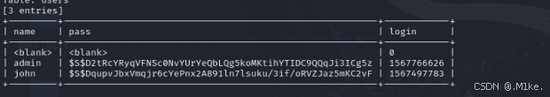 提取到了 admin 账户和 john 账户的密码,但是他们都被加密了,我们可以把密码复制到一个文件中