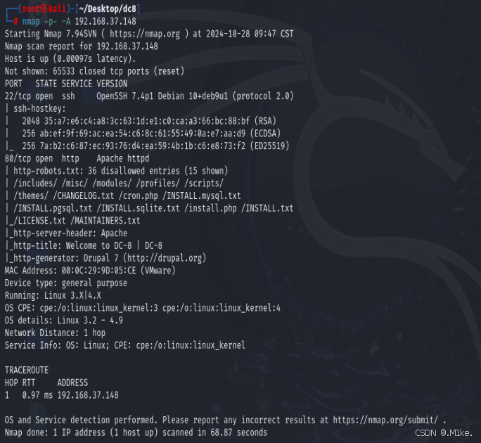 使用nmap扫描靶机端口,可以发现依旧只开放了 22 和 80 端口