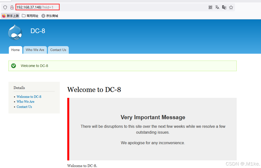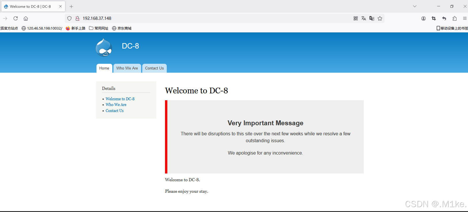 可以发现CMS和DC-7靶场相同,但是并没有发现登录界面,则需要我们进行目录扫描看看是否能扫到后台登录网页