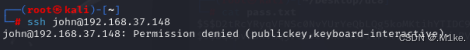 试着使用 john 账户进行 ssh 连接,但是失败了,没有公钥