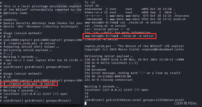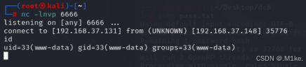 回到kali中也可以发现已经拿到了www-data的shell 了