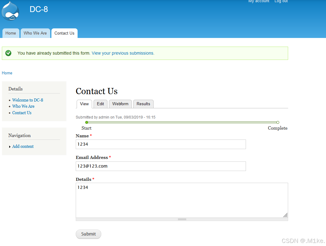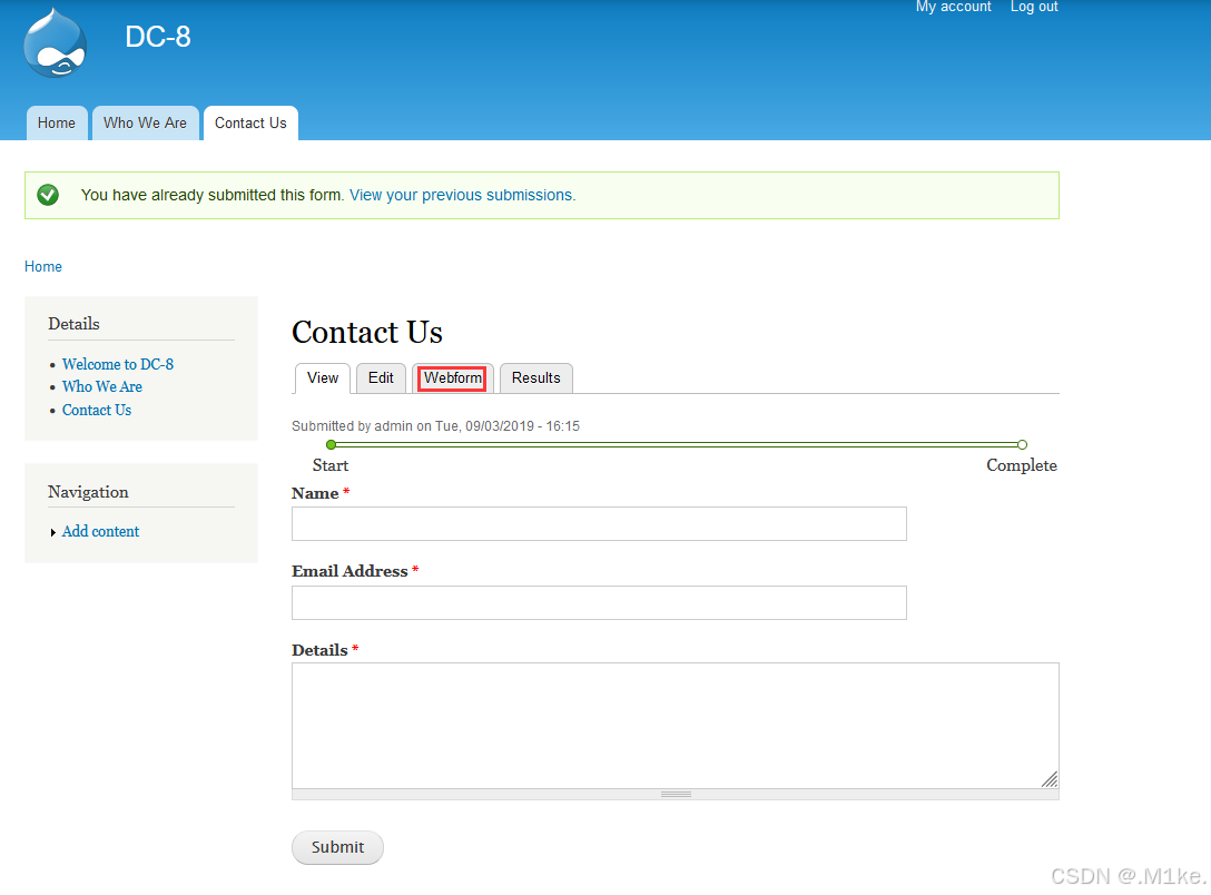 点击上方 Edit、Webform、Results 都会进入一个设置