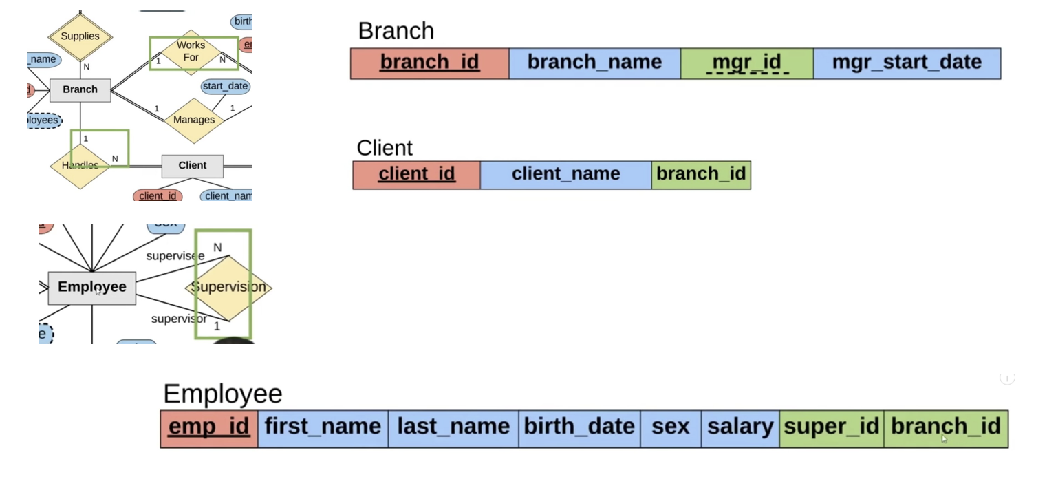 Mapping the entity relation model to the schema: