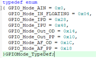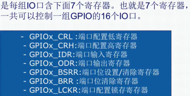 一个寄存器32位,配置8个端口,每个端口4位,两位配置(00输入模式,01输出模式最大10MHz,10输出模式最大2MHz,11输出模式最大50MHz)