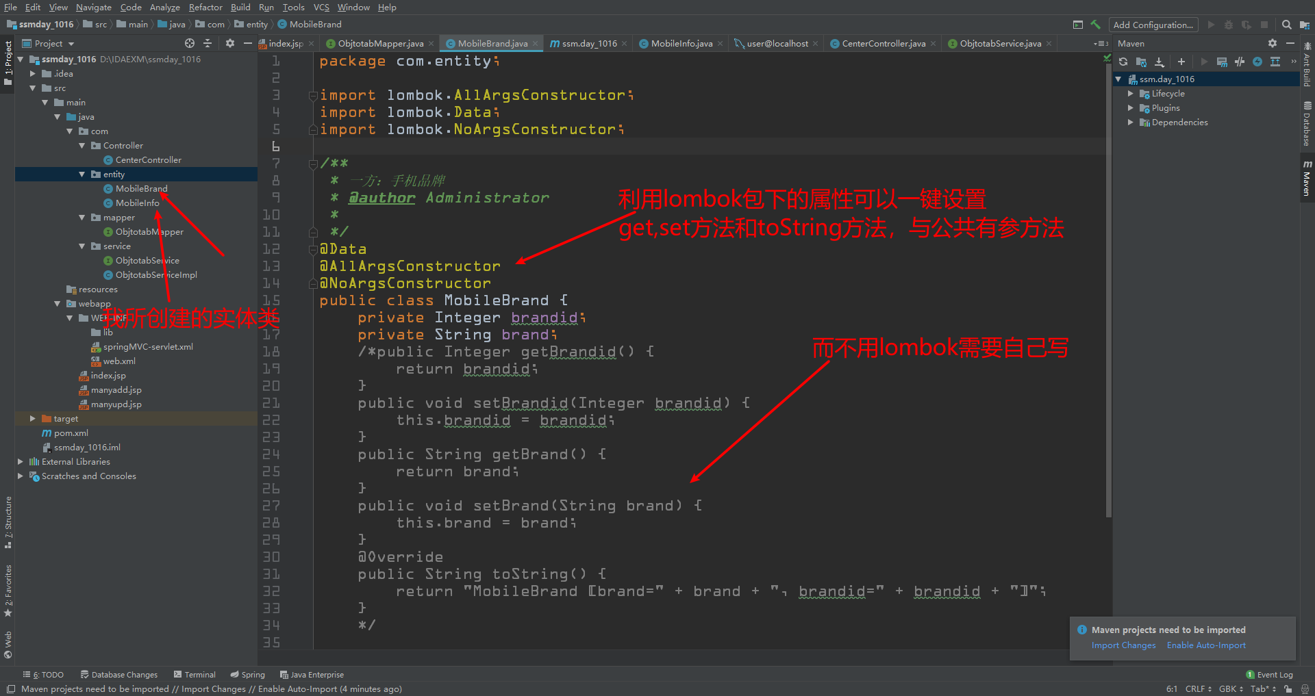 package com.entity; import lombok.AllArgsConstructor; import lombok.Data; import lombok.NoArgsConstructor; /** * 多方:手机详细信息: * @author Administrator * */ @Data @AllArgsConstructor @NoArgsConstructor public class MobileInfo { private Integer id ; private Integer brandid; private Double price ; private Integer weight ; private String type ; private String size ; private String style ; /*public Integer getId() { return id; } public void setId(Integer id) { this.id = id; } public Integer getBrandid() { return brandid; } public void setBrandid(Integer brandid) { this.brandid = brandid; } public Double getPrice() { return price; } public void setPrice(Double price) { this.price = price; } public Integer getWeight() { return weight; } public void setWeight(Integer weight) { this.weight = weight; } public String getType() { return type; } public void setType(String type) { this.type = type; } public String getSize() { return size; } public void setSize(String size) { this.size = size; } public String getStyle() { return style; } public void setStyle(String style) { this.style = style; } public MobileInfo() { } public MobileInfo(Integer id, Integer brandid, Double price, Integer weight, String type, String size, String style) { this.id = id; this.brandid = brandid; this.price = price; this.weight = weight; this.type = type; this.size = size; this.style = style; } @Override public String toString() { return "MobileInfo [brandid=" + brandid + ", id=" + id + ", price=" + price + ", size=" + size + ", style=" + style + ", type=" + type + ", weight=" + weight + "]"; } */ }